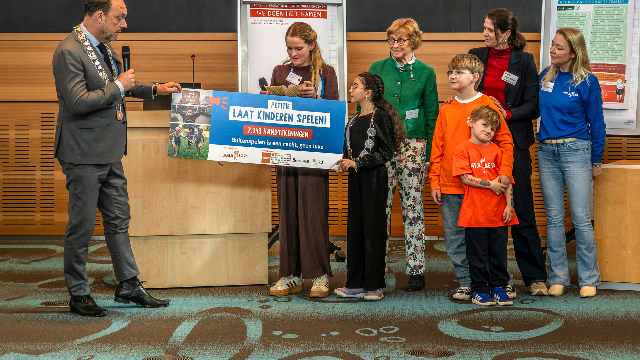 Onze Buitenspeler Klaas - kinderambassadeur van Jantje Beton - overhandigde de petitie aan de twee kinderburgemeesters van Zwolle, die deze vervolgens doorgeven aan de burgemeester. Een krachtig signaal van kinderen aan alle gemeenten in Nederland, aan iedereen die beslissingen neemt over hun speelruimte.