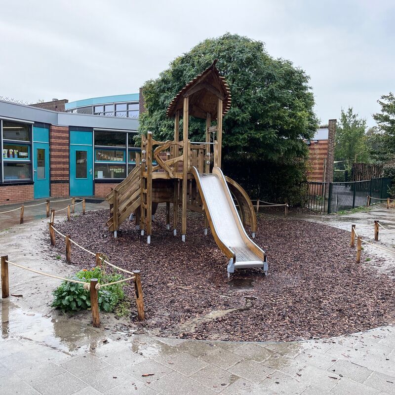 We hebben verschillende speelzones gecreëerd, waaronder een schommelplek en een grote heuvel met een tunnel. Met de bijdrage hebben we een waterspeelplek gerealiseerd. We zien een enorm verschil: de kinderen spelen actief, verspreiden zich over het plein en er is nauwelijks nog ruzie."