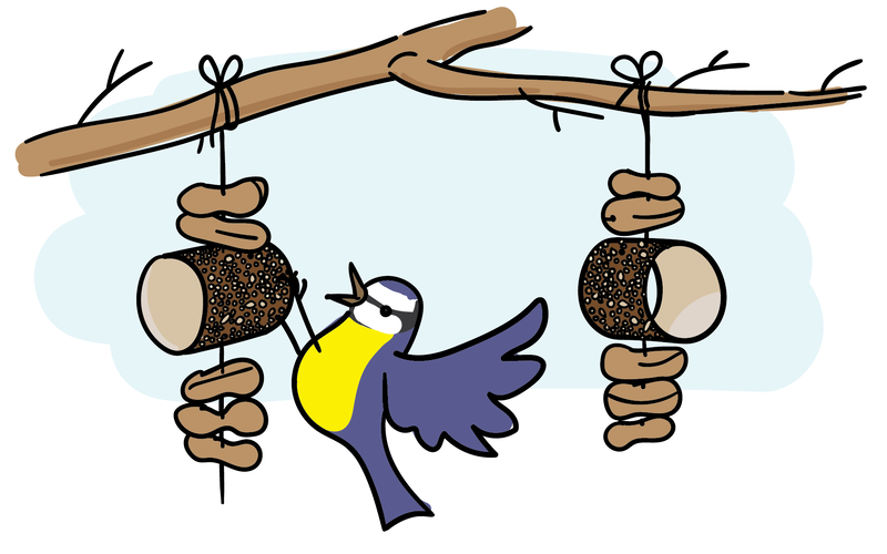 Maak samen een grote “vogeltafel” met traktaties voor meerdere vogels.