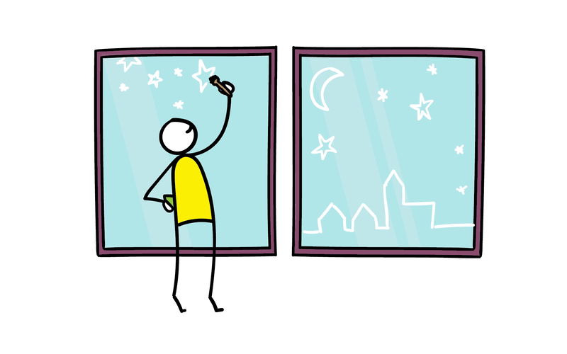 Voor kleinere kinderen: laat hen één raam of één deel van een raam versieren.