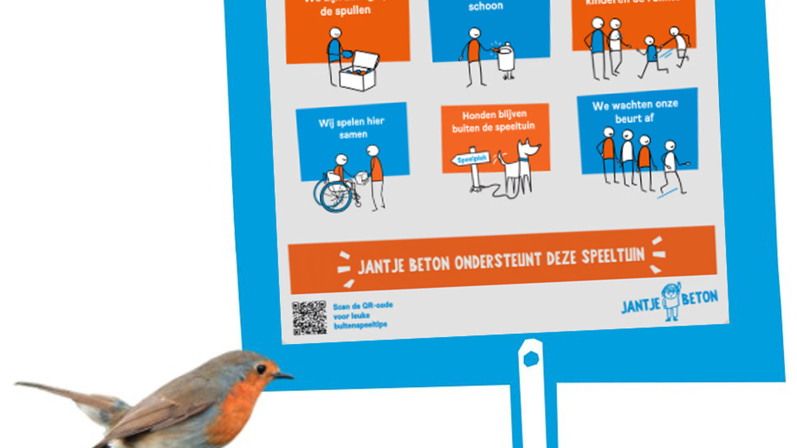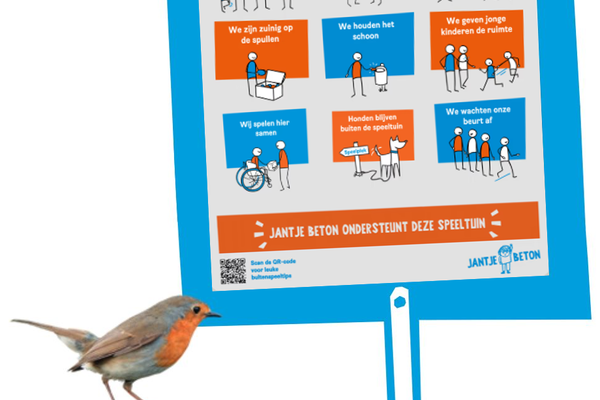 *Het bord is alleen gratis voor aangesloten speeltuinen en kindervakanties bij Ondersteuning Jantje Beton.